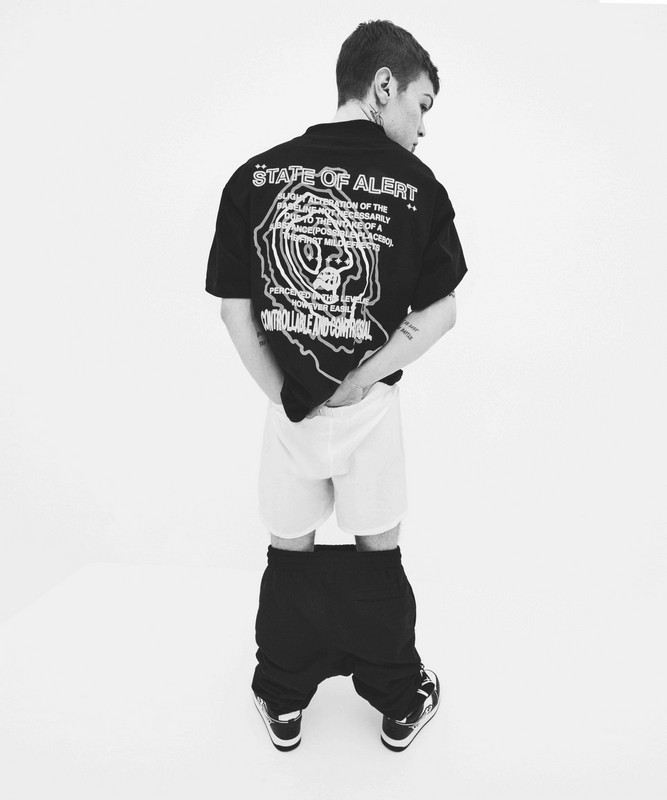La proposta apparel, che completa quella delle sneakers, si è ormai sviluppata in una collezione composta da t-shirt e felpe, maglioni in jacquard, puffy jacket e pantaloni in cotone felpato dal fit morbido. Tutti i capi della collezione autunno inverno 2022 2023 sono personalizzati da stampe serigrafiche 3D e da patch ricamate a contrasto.