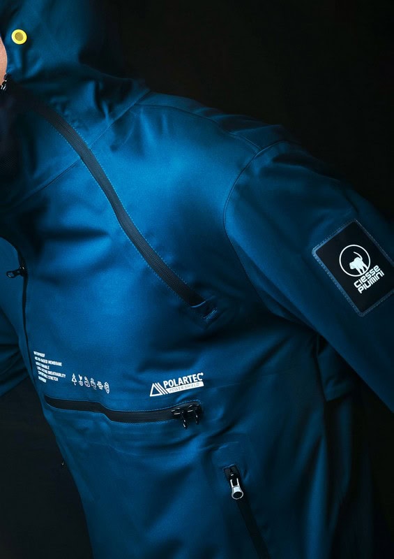 La Race jacket, espressione della tecnologia, funzionalità, ricerca, stile e performance, è stata progettata per essere indossata a qualsiasi temperatura e condizione climatica grazie al tessuto certificato Polartec Power Shield e a uno shape ergonomico stile anorak.