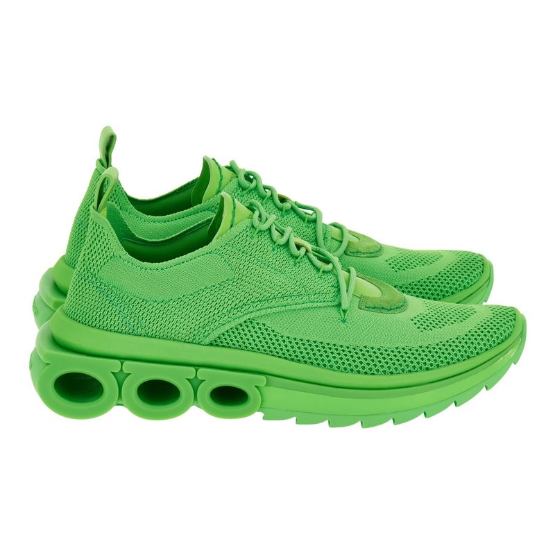 Ferragamo sneaker Pre-Fall 2023: la Maison svela la sua iconica sneaker in una varietà di nuovi colori, il classico blu notte, un vivace blu lapis e un sorprendente verde lime.