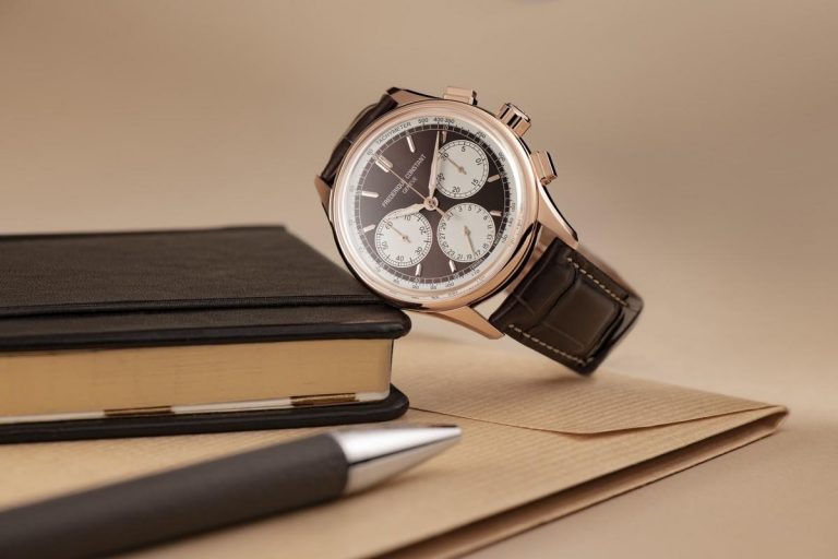 La prima versione sfoggia i tre contatori su un quadrante color cioccolato, per una cassa da 42 mm placcata oro rosa. La seconda, su un quadrante blu con cassa in acciaio. Moderni e dinamici, questi nuovi Flyback Chronograph Manufacture sono dotati di indici bâton e lancette luminescenti, nonché di un bracciale in pelle di alligatore con fibbia déployante che reca inciso lo stemma della manifattura Frederique Constant.