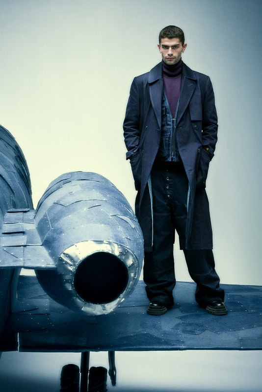 Uno degli elementi salienti della presentazione della nuova collezione di G-Star RAW è stato il famoso jet privato a grandezza naturale, una creazione artistica di Maarten Baas, che ha progettato questo aereo in denim per il brand lo scorso anno in occasione della Milano Design Week 2023.