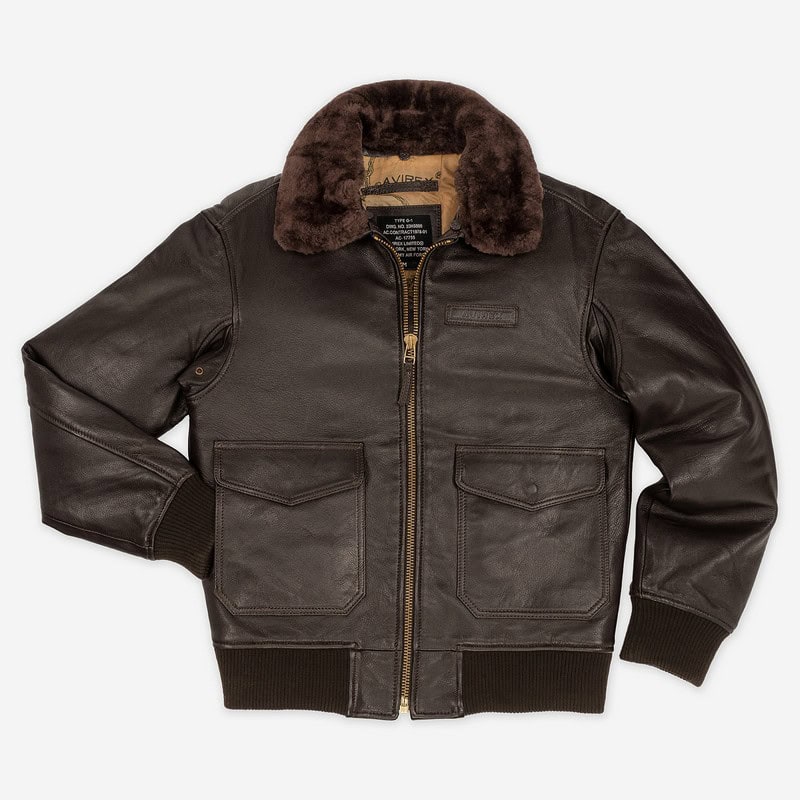 Il G1 è il capo storico di Avirex, pratico e tecnico, proposto in tutte le collezioni. Originariamente realizzato in pelle di cavallo, oggi è un giubbotto lavato in pelle di capra pakistana marrone scuro. Avirex realizza i suoi capi “seguendo la materia prima”: lo stesso esercito americano voleva che le pelli di capra fossero trattate e prodotte in Pakistan, perché lì non esistono allevamenti e gli animali sono allo stato brado.