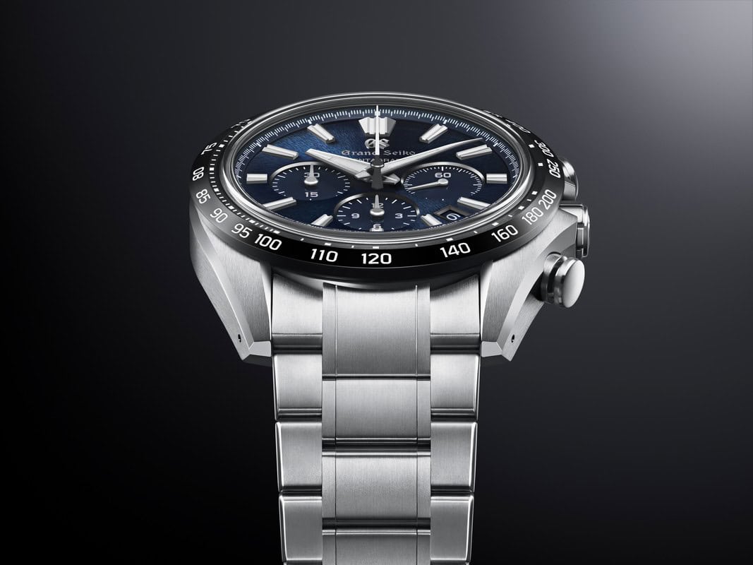 Gli ideali di un orologio sportivo Grand Seiko sono evidenti in questo nuovo cronografo. Le importanti lancette e gli indici prominenti e scanalati dello stile Evolution 9 garantiscono una straordinaria leggibilità. La lancetta dei secondi del cronografo è lievemente curvata in basso verso il quadrante, in modo che la sua punta sia più vicina possibile agli indici e si estenda verso le indicazioni poste alle estremità del quadrante. Anche la lancetta dei minuti è lievemente curvata, per semplificare la leggibilità dell’ora.