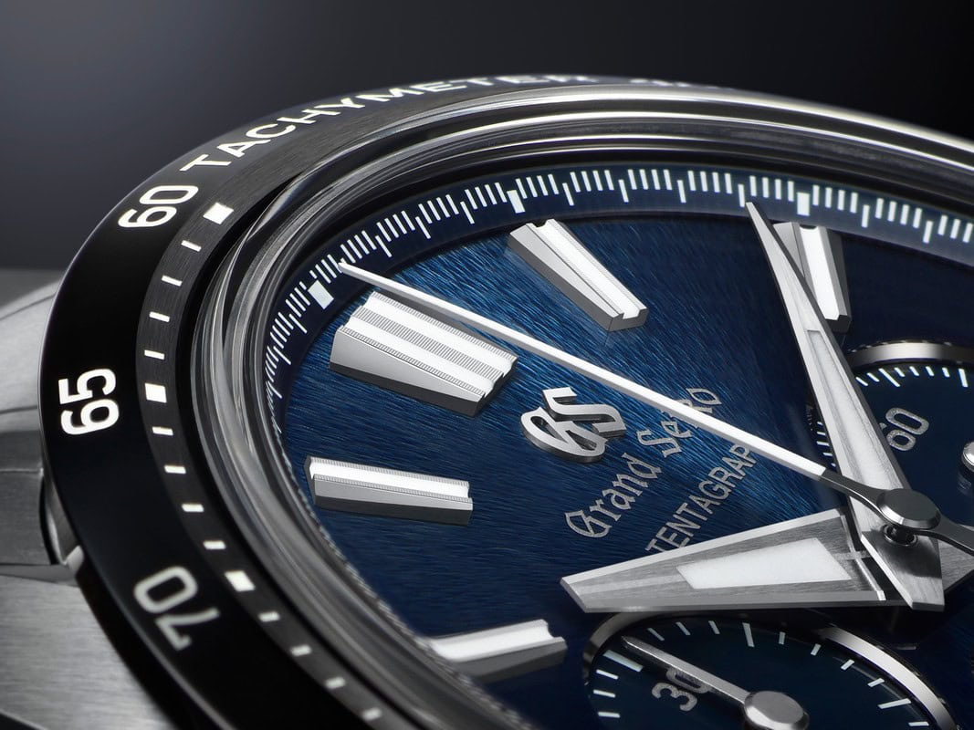 Il quadrante presenta il tratto caratteristico di Grand Seiko “pattern Monte Iwate”, che trae ispirazione dal profilo increspato dell’omonimo monte, visibile dalle finestre dello Studio Shizukuishi Grand Seiko, dove il Tentagraph ed altri orologi meccanici Grand Seiko vengono assemblati e regolati a mano. La maestosa vetta è un’ispirazione costante per Grand Seiko, la decisione di sceglierla per il primo cronografo meccanico del marchio riveste un ruolo simbolico importante per il Brand. Infine la delicata tonalità blu del quadrante richiama il cielo notturno che sovrasta il Monte Iwate evocando un’immagine estremamente suggestiva del paesaggio giapponese.