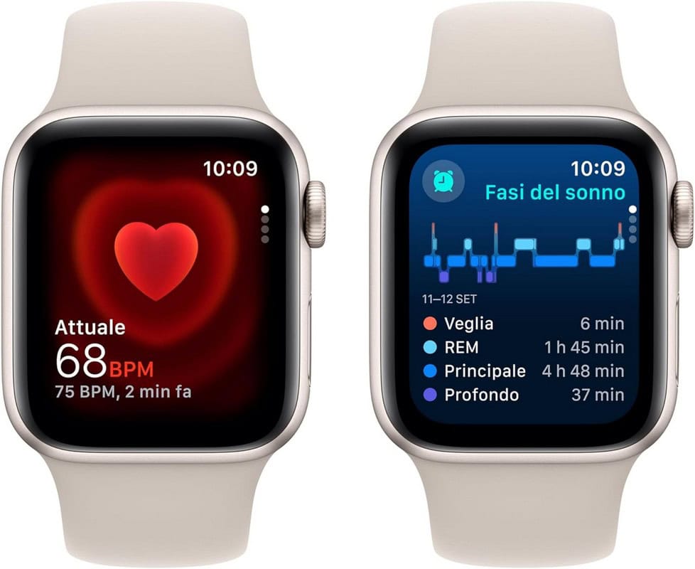 Questa versione dell’Apple Watch vanta ancora un accurato cardiofrequenzimetro, un’autonomia di 18 ore e importanti funzioni di sicurezza come l’SOS di emergenza e il rilevamento delle cadute. Le uniche cose importanti che mancano rispetto all’Apple Watch 9 sono il nuovo gesto Double Tap, la funzionalità Siri Health e, naturalmente, la funzione di rilevamento dell’ossigeno nel sangue.