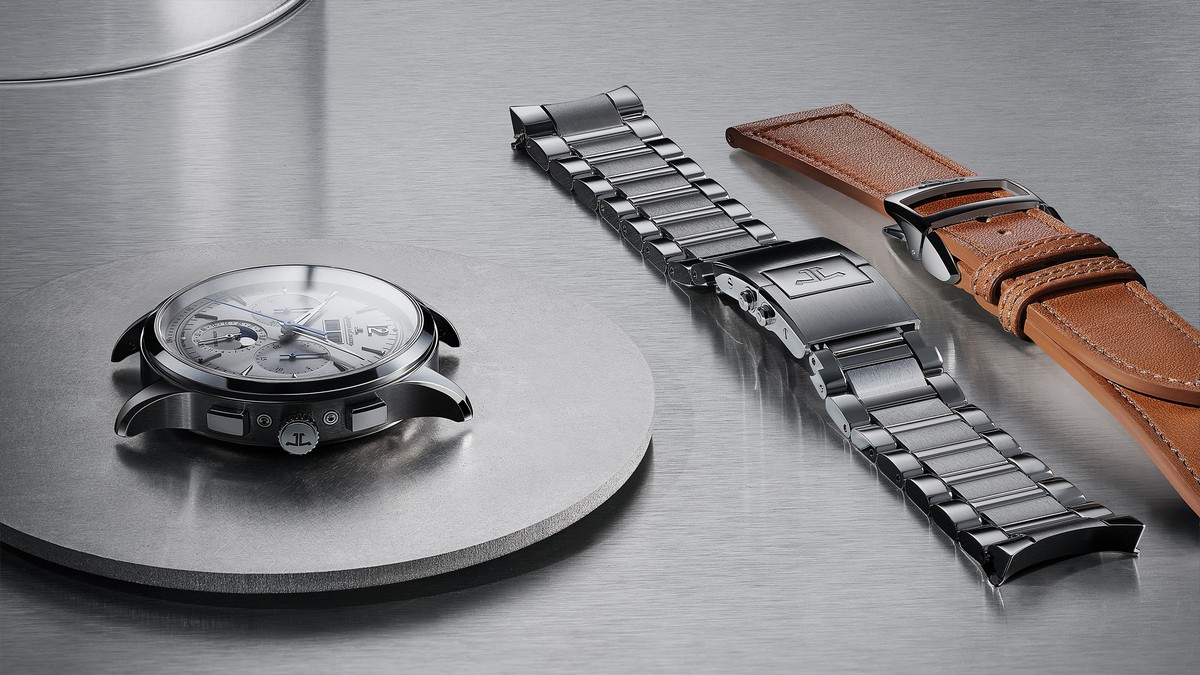 Master Control Chronograph Calendar è anche un cronografo essenziale, con lancette del cronografo e disco delle fasi lunari blu, per far risaltare le indicazioni delle complicazioni. Per la prima volta Master Control Calendar e Master Control Chronograph Calendar sono disponibili su un bracciale in acciaio con rapido sistema di sostituzione: riflesso dell’importanza di un orologio versatile e resistente da indossare tutti i giorni.