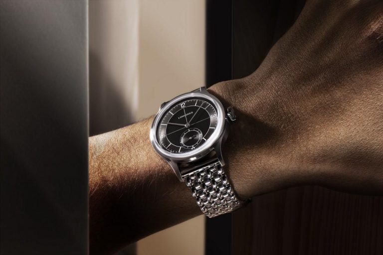 The Longines Heritage Classic è proposto con un cinturino in pelle color cognac “effetto pullup” (il colore si modifica con l’uso rendendo ogni esemplare unico), oppure con un bracciale in acciaio a “grana di riso” che alterna maglie spazzolate e lucide.