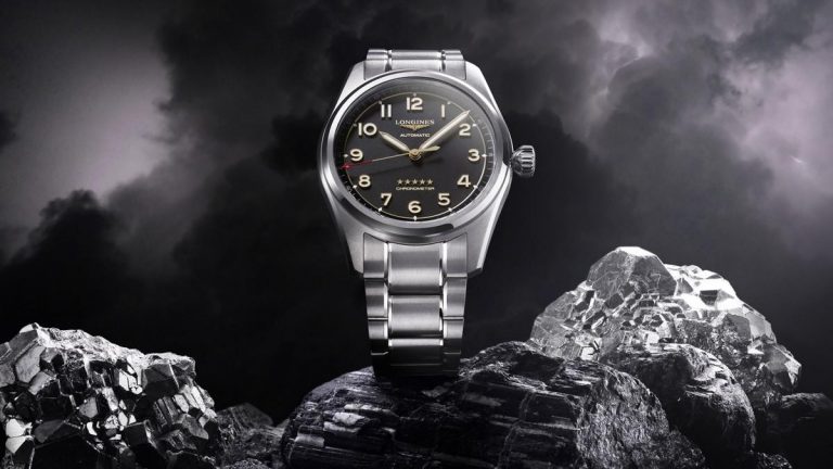 Come a ricordarci l’origine minerale del titanio, il Longines Spirit gioca con i contrasti tra le tonalità scure e la delicata lucentezza delle superfici. Le lancette, i numeri, le stelle e la clessidra esibiscono delicati riflessi dell’oro levigato (1N) ed esprimono il perfetto equilibrio tra tonalità e materiali, sostenuto dall’assenza del datario per consolidare ulteriormente la simmetria “aeronautica” dell’orologio.