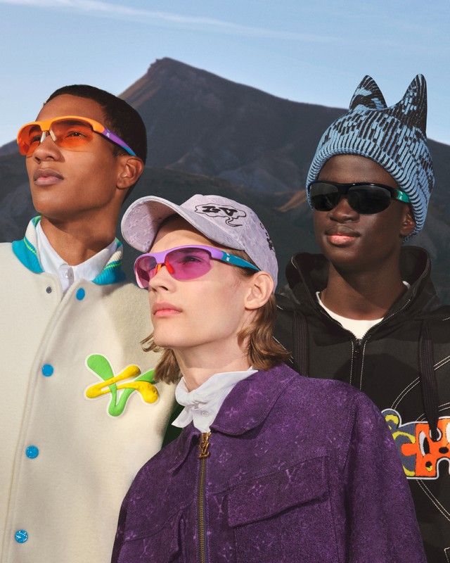 Il design del modello LV 4Motion esprime le abilità e la ricerca tecnologica costante della Maison. Montature in gomma e nylon in combinazioni a contrasto di colori accesi, arancione/azzurro/viola/fucsia o nero/verde, sono progettate per adattarsi ad ogni morfologia grazie alle aste telescopiche e regolabili.