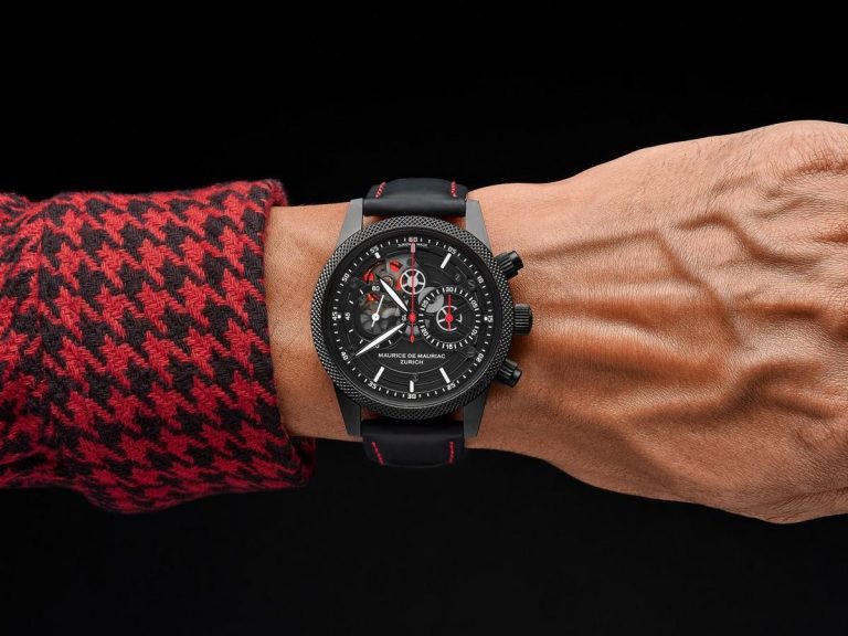 Il Maurice de Mauriac Grand Coeur pulsa con il calibro Concepto Manufacture REF 3038, un movimento automatico con rotore centrale. Batte 28.800 volte all’ora, ha un sistema di ammortizzatori Incabloc, 29 gioielli e 48 ore di riserva di carica. Per il Grand Coeur, il bilanciere e lo scappamento sono spostati nella parte superiore del movimento. La cassa in titanio con un diametro di 45 mm ha un rivestimento in DLC, l’orologio ha un vetro zaffiro bombato e pulsanti a vite. Il cinturino è in gomma con cuciture rosse, mentre la box del prodotto è realizzata con pelle 100% italiana.