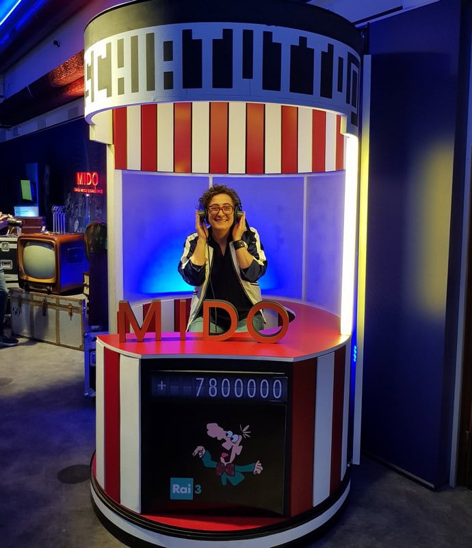 Eccomi in postazione! Nella cabina dell’iconico programma “Rischiatutto” condotto da Mike Bongiorno.