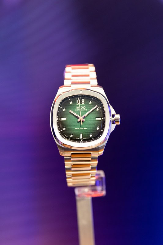 La collezione comprende cinque modelli: tre versioni in acciaio, una con quadrante blu, una in verde sfumato e l’altra con quadrante nero sfumato, e due versioni con cinturino in caucciù, una in blu navy e l’altra nel caratteristico arancione di Mido.