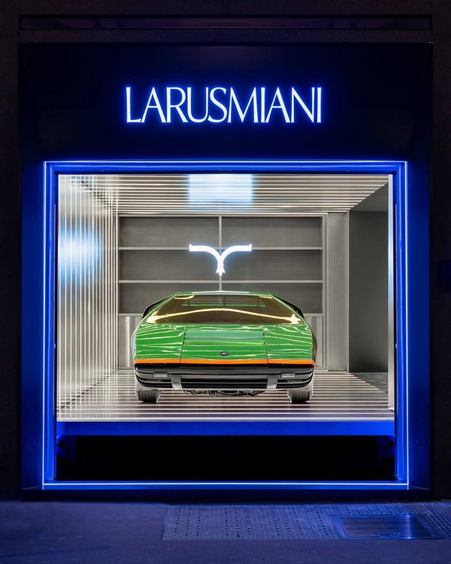 La nuova Boutique Larusmiani è stata disegnata a quattro mani con il famoso architetto Benedetto Camerana, che nel 2015 era stato protagonista del rinnovamento del Museo Alfa Romeo ad Arese, dove la Carabo abitualmente è esposta. La concept car Alfa Romeo, oltre ad impreziosire l’inaugurazione della nuova distintiva Boutique, rappresenta la prima vettura a prendere parte al progetto “The Automotive Gallery”: un’area espositiva permanente all’interno dello store dedicata al mondo dell’automobile. La madrina di questo progetto Milanese non poteva che essere un’Alfa Romeo.