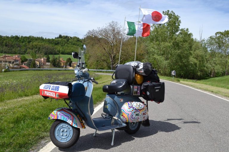 Lui si chiama Fabio Cofferati ed in questo momento è in viaggio da Milano a Tokio in sella ad una Vespa. Il viaggio, preparato per il 2020 e rimandato al 2021 come le stesse Olimpiadi, è iniziato. Per quanto riguarda il mezzo, si tratta di Vespa 150 VBB2 del 1963, impreziosita dai decori dell’artista Luca Moretto.