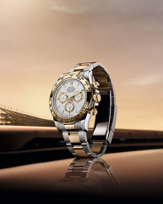Il Cosmograph Daytona, presentato nel 1963, è stato progettato per rispondere alle esigenze dei professionisti delle gare automobilistiche. Dotato di una lunetta con scala tachimetrica e di un movimento meccanico ad alte prestazioni interamente sviluppato e prodotto da Rolex, questo cronografo divenuto leggendario è lo strumento ideale per misurare un intervallo di tempo o determinare una velocità media.
