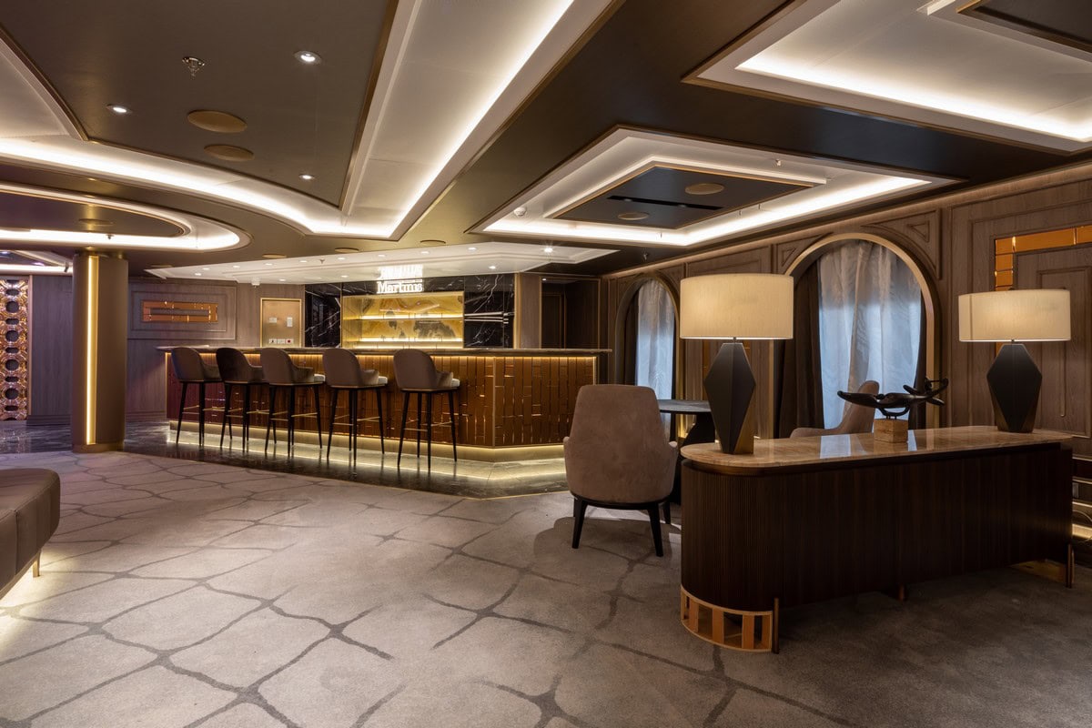 Dallo stile Art decò, il Martini Bar, situato sul ponte, appena sopra l’Atrium, richiama il glamour e l’eleganza dei ruggenti anni Venti.