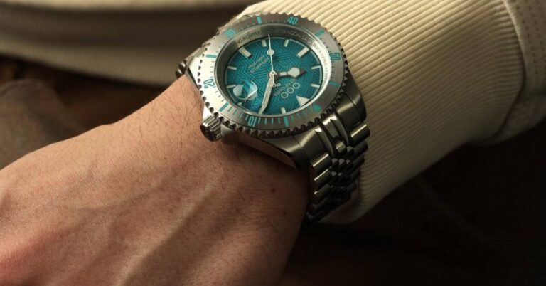 La cura per i dettagli si estende ben oltre il quadrante. La trama azteca è ripresa anche nel rotore visibile attraverso il vetro zaffiro del fondello e nella chiusura déployante a farfalla del bracciale Jubilee, creando un’estetica coerente e ricercata.