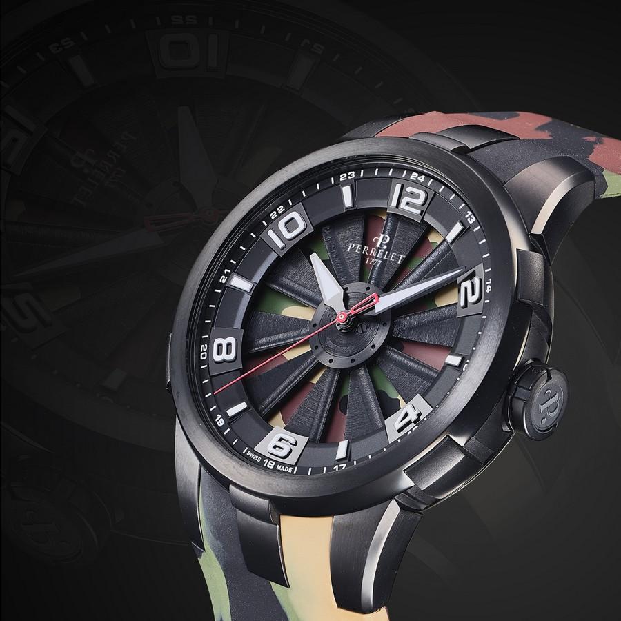 Nel 2020 Perrelet amplia la collezione Turbine dando il benvenuto al modello “Turbine Camo” in serie limitata di soli 100 esemplari. Perrelet, sempre attenta all’evolversi delle tendenze e dei gusti di appassionati alla ricerca di orologi esclusivi, conferisce all’ultimo nato uno stile fresco, moderno e dinamico.