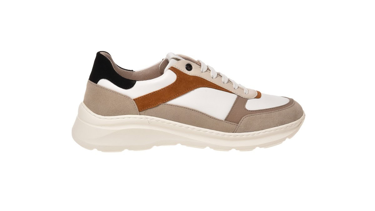 Pollini sneaker Roomy è realizzata con materiali di alta qualità, combina pelle di vitello e suede, e si distingue per la sua linea semplice e moderna. Disponibile in quattro varianti di colore, che includono combinazioni di bianco e perla con tonalità vivaci di verde, blu e terra di Siena, “Roomy” si adatta a ogni stile e personalità.