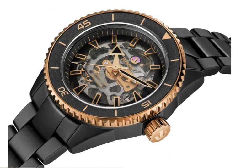 La serie Captain Cook Skeleton di Rado continua a distinguersi con il lancio del nuovo modello in ceramic high-tech, arricchito da dettagli in PVD oro rosa. Questo segnatempo, che unisce un design audace a funzionalità impeccabili, si rivolge agli appassionati di avventura che non vogliono rinunciare all’eleganza.