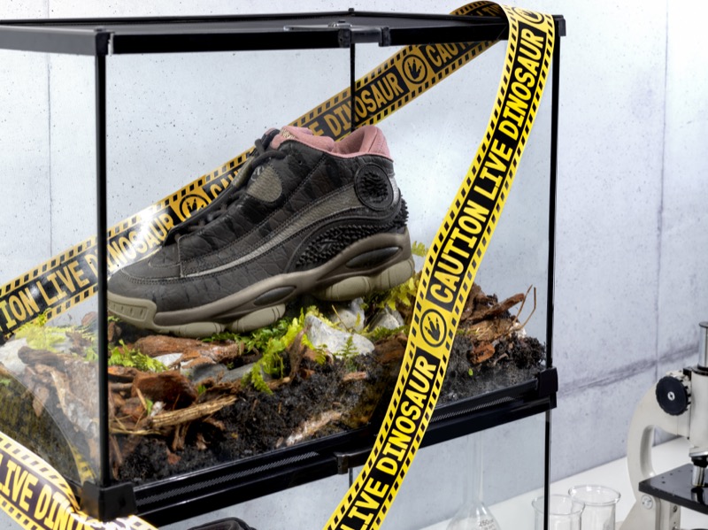 Questa sneaker dal look raffinato si ispira al laboratorio di bio-genetica Biosyn Valley, come visibile nel film Jurassic World Dominion. La scarpa presenta dettagli che richiamano la genetica, tra cui un’etichetta con la sequenza di DNA e la suola effetto marble realizzata in diversi colori e texture a rappresentare l’unione tra diversi tipi di DNA.