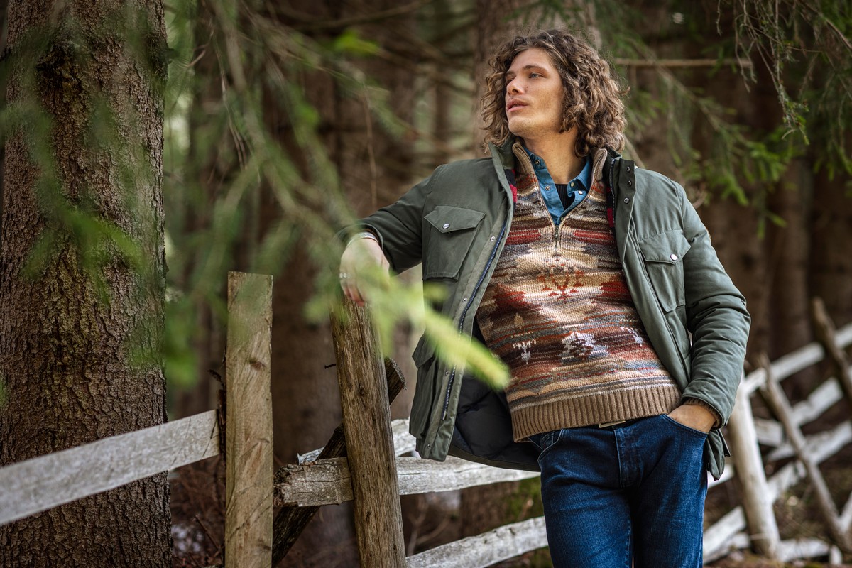 Altro capo must have, il maglione zippato con stampa Fair Isle, la famosissima fantasia nata appunto nella piccolissima isola Fair situata a nord est della Scozia e divenuta celebre nel 1921 quando l’allora principe del Galles Edoardo VIII, futuro Re d’Inghilterra e padre della Regina Elisabetta, indossò in pubblico un maglione sportivo con questo motivo.