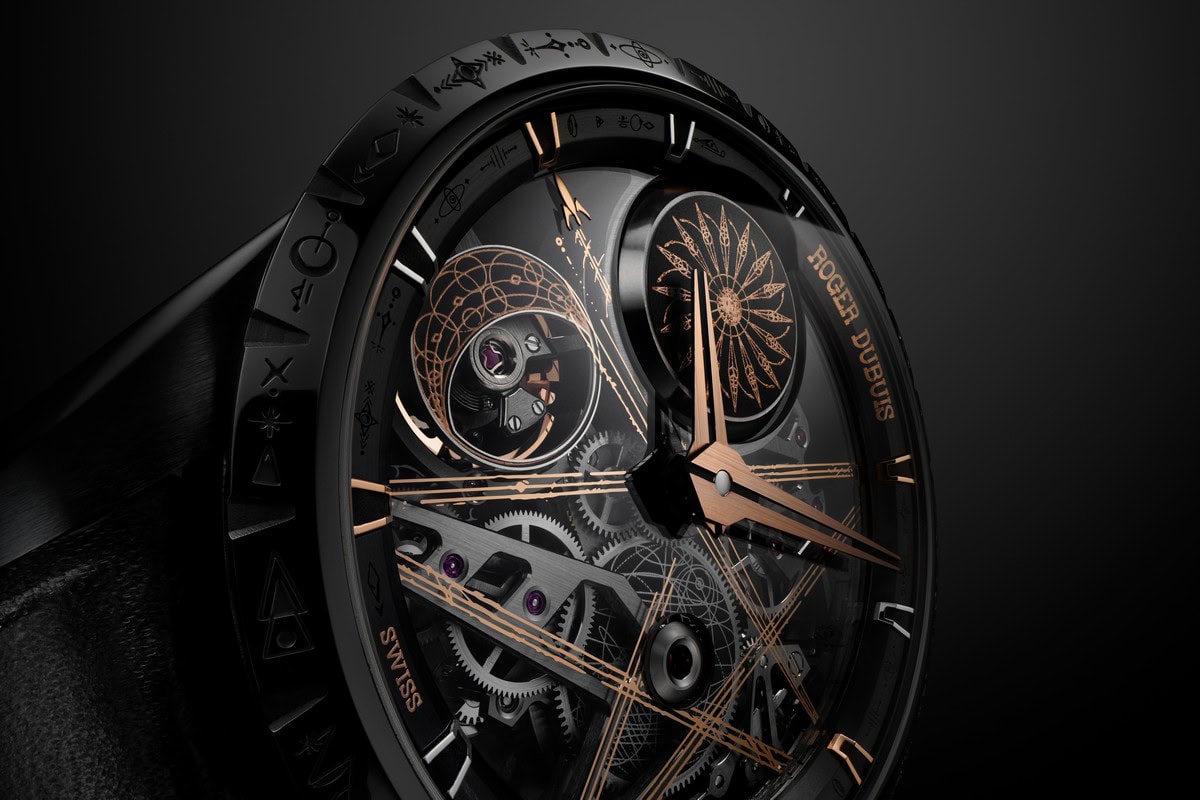 Questa volta, l’iconico artista tatuatore Dr. Woo torna nel luogo più importante per Roger Dubuis, la Manifattura stessa, e dona il suo tocco sapiente all’Excalibur Monobalancier. Nel 2022 questo celebre segnatempo è stato rivisitato e ridisegnato con linee pulite lungo la cassa e il movimento, e con una palette di materiali contemporanei, che lo hanno trasformato nel terreno perfetto per la collaborazione della Maison con la sua Urban Culture Tribe. L’ispirazione artistica di Dr. Woo si manifesta su complesse superfici di ceramica, dove il tempo viene scandito tra le forze del sole, della Terra e della luna.
