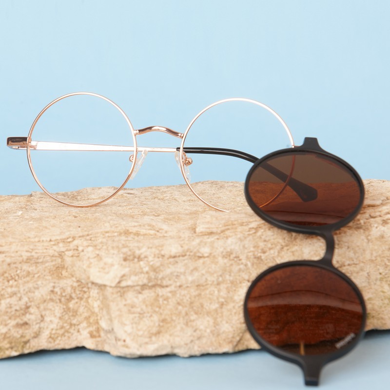 Tutte le montature della collezione sono create con materiali di alta qualità e design di tendenza permettendo la fusione naturale dell’occhiale da vista e da sole con un solo clip. Accessori di assoluto comfort, i modelli unisex in acciaio inossidabile sono d’ispirazione rètro disponibili nei colori oro, pink gold e grigio con clip magnetiche nei colori del grigio, marrone e verde.