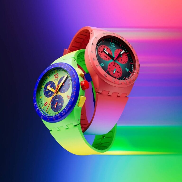 La collezione Swatch Essentials è costruita attorno all’idea di versatilità: ogni modello è una variazione sul tema del colore, che si declina su quadranti monocromatici, cinturini coordinati e dettagli capaci di sorprendere. L’effetto finale è un mix riuscito tra praticità e spirito giocoso, perfetto per chi ama osare con stile.