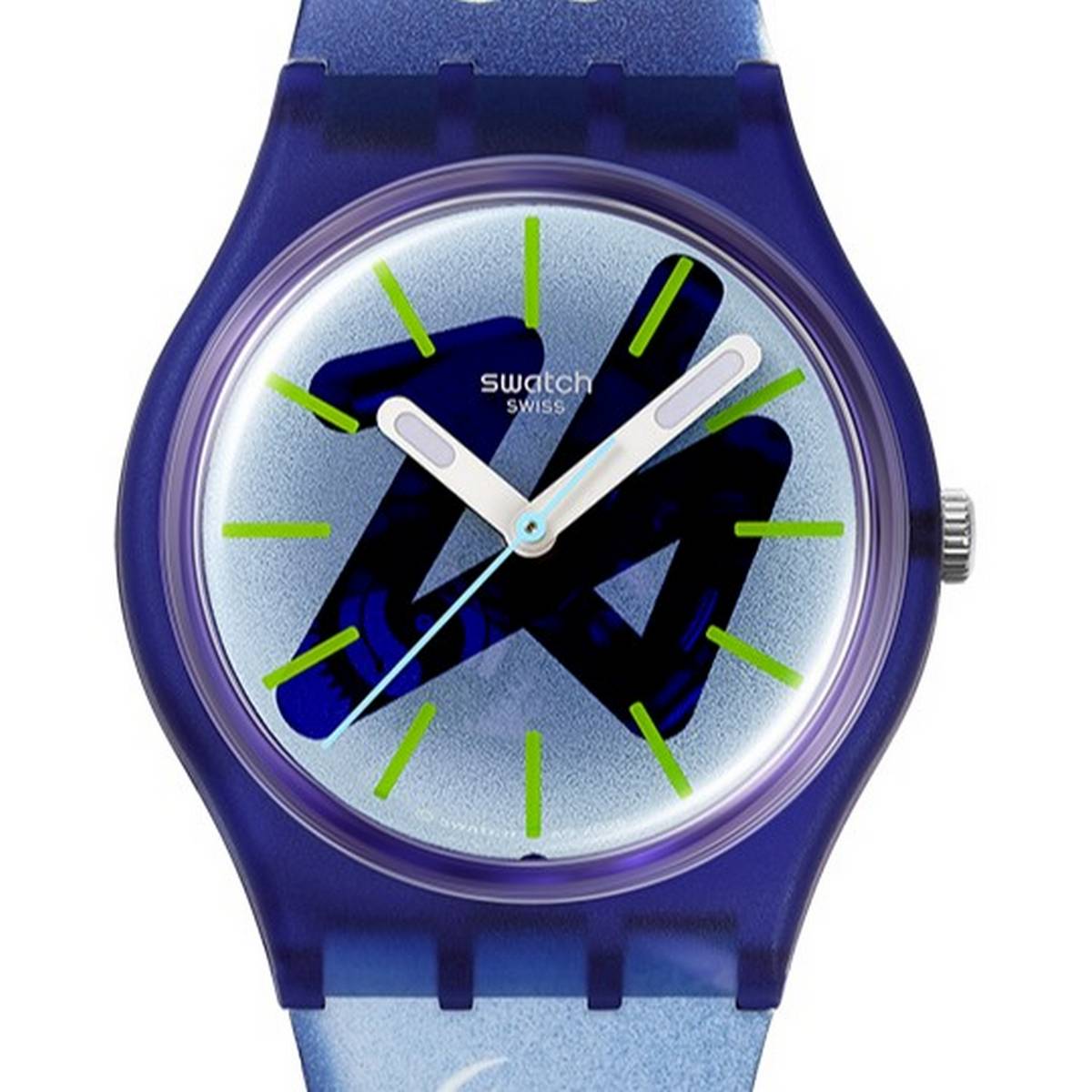 Il primo modello prende il nome evocativo di Chasing Peaks. Al centro del quadrante, campeggia il numero 26, come se fosse stato tracciato con un dito sul vetro appannato o ghiacciato di una finestra d’inverno. Un dettaglio visivo che richiama l’anno della manifestazione, ma anche l’emblema grafico ufficiale di Milano Cortina 2026. L’insieme restituisce l’atmosfera delle vette alpine che ospiteranno le gare, con un linguaggio che unisce ironia e raffinatezza tipica dello stile Swatch.