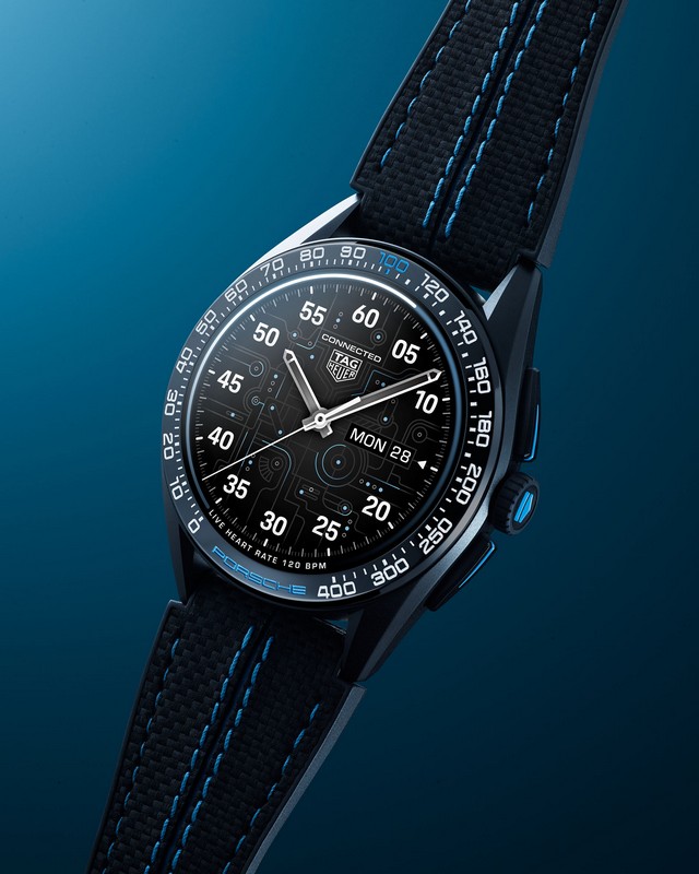 Ispirato a circuiti di bordo e circuiti da corsa, il quadrante offre un effetto visivo animato che connette gli orologi Tag Heuer e le auto Porsche all’insegna della tecnologia e della velocità. L’orologio presenta inoltre funzioni che permettono di leggere informazioni dai modelli Porsche compatibili direttamente sul quadrante, come la percentuale della batteria dell’auto e il chilometraggio totale.