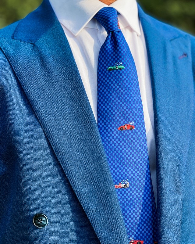 Le auto vincitrici sul Circuit de la Sarthe – dalla Chenard & Walcker Sport 3-litre, la prima a tagliare il traguardo nel 1923, alle mitiche Ferrari, Aston Martin, Ford, fino alle Mazda e Audi vincenti degli ultimi decenni – diventano le protagoniste indiscusse di una cravatta da collezione.