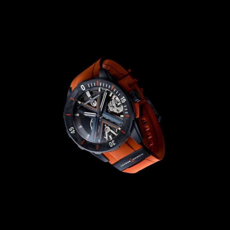 La squadra di ingegneri ha completamente ridisegnato il movimento UN-371, che è visibile attraverso la cassa di 44mm. Originariamente progettato per la collezione Executive Skeleton, è stato migliorato con l’aggiunta della massa oscillante a forma dell’iconica X di Ulysse Nardin. La protezione del bariletto posta a ore 12 è di Carbonium blu, come la lunetta; le lancette delle ore, dei minuti e dei secondi sono rivestite di Superluminova, così da agevolare la lettura dell’ora anche sott’acqua.