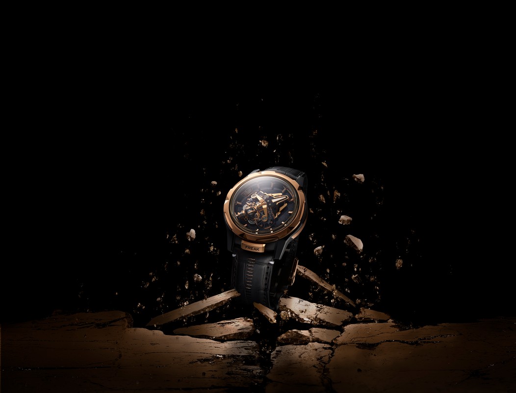 Il segnatempo Freak S è proposto nell’edizione limitata di 75 orologi, di cui solo 40 verranno prodotti nel 2022. Ciascun orologio è accompagnato da un cinturino di alligatore e decorato con un taglio Sport di color oro rosa. È dotato di un sistema di chiusura automatico in titanio DLC che si apre con un solo click. Anche la fibbia, grazie ad un sistema brevettato a tripla fibbia déployante SYNC, si apre con un semplice click. Incredibilmente semplice, con la sicurezza di avere una soluzione alternativa.