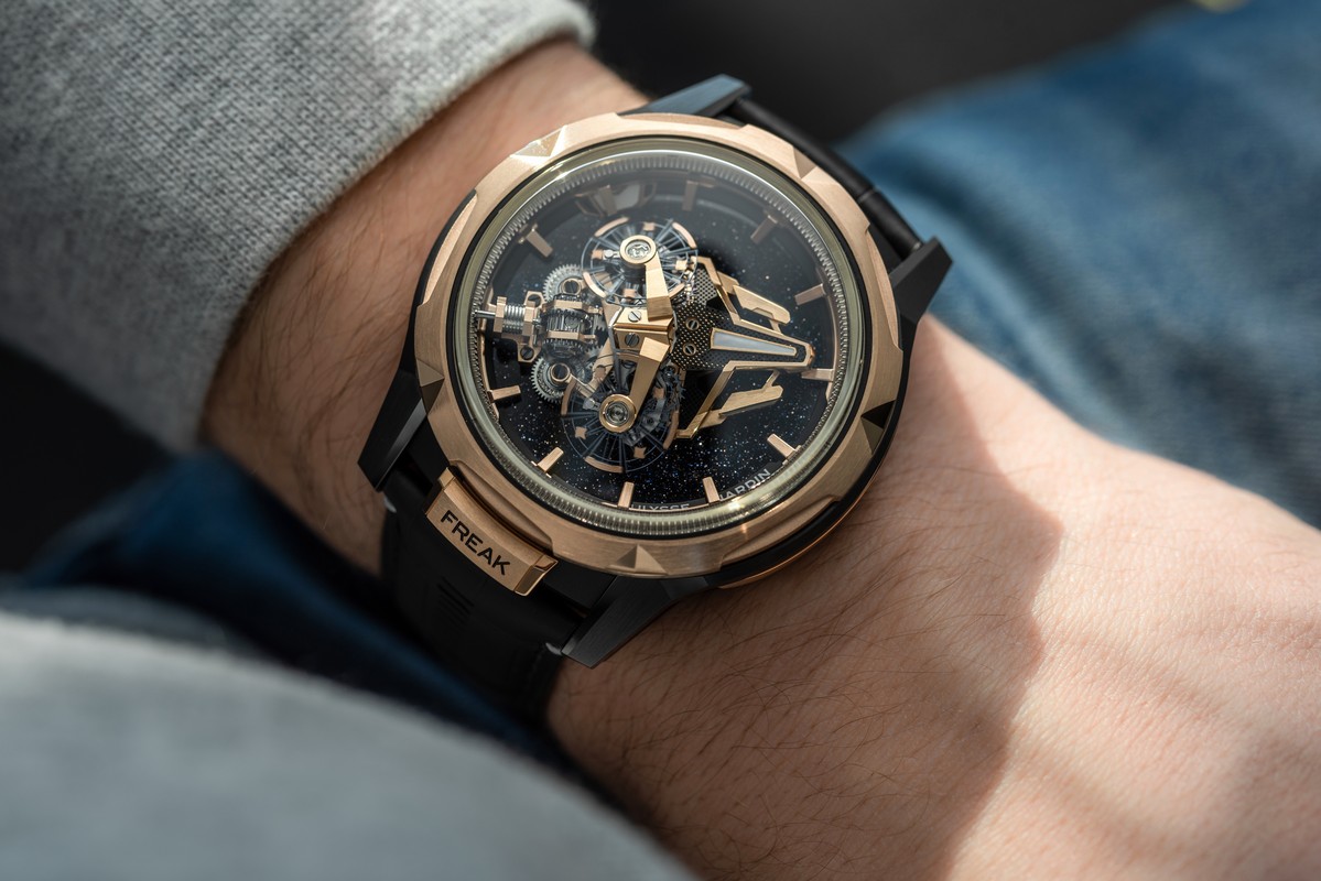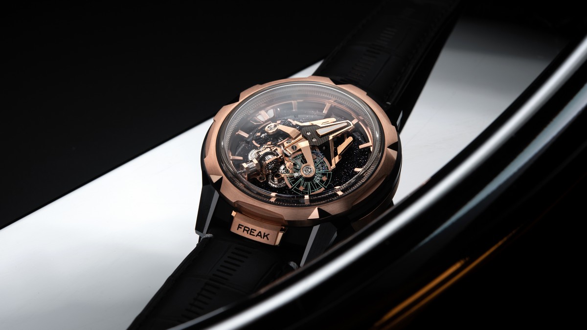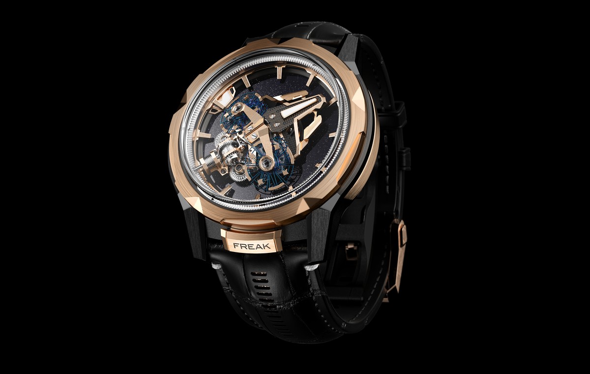 Con l’obbiettivo di stupire gli aficionados, gli sviluppatori della Manifattura hanno realizzato il primo doppio oscillatore con un differenziale a carica automatica utilizzando il sistema “Grinder”, due volte più efficiente di un sistema di carica tradizionale. L’orologio Freak S è l’evidente evoluzione tecnica del Freak Vision del 2018: un nuovo prodigio meccanico. La cassa è ispirata al primo orologio Freak del 2001 con una costruzione che consente una combinazione di diversi materiali come la ceramica, il titanio e l’oro.