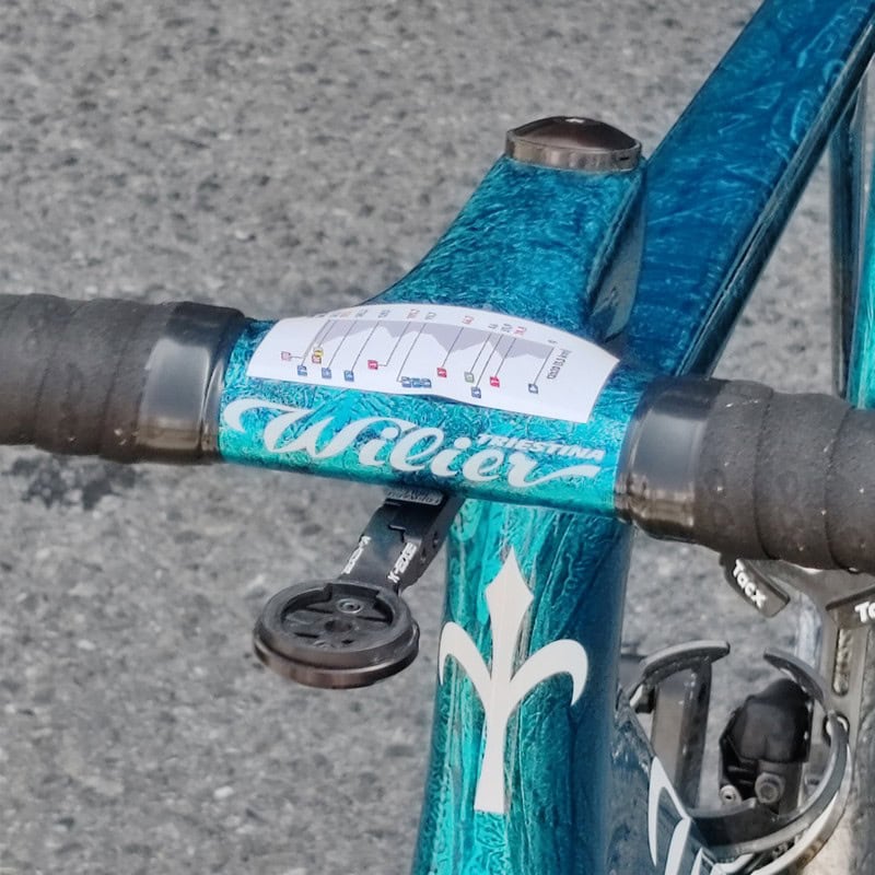 Prima della partenza di ogni tappa, sul manubrio delle bici viene attaccata la mappa.
