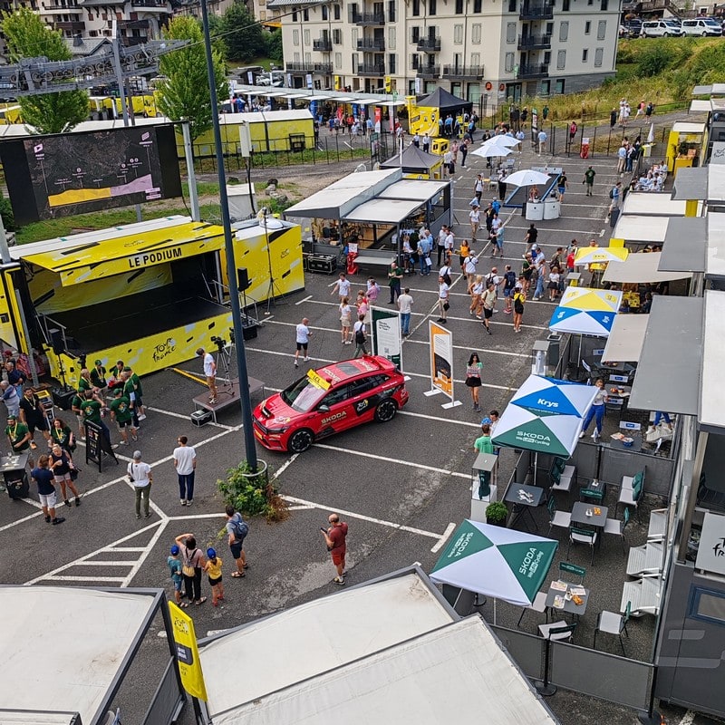 Quest’anno ricorre il 20° anniversario della stretta collaborazione tra Škoda Auto in qualità di partner ufficiale e il Tour de France. Lungo il percorso e in TV, i fan possono assistere alla “parata” dei mezzi di supporto della Casa boema, che quest’anno ha messo a disposizione 209 veicoli di cui 207 con motorizzazioni ibride o completamente elettriche. Il Direttore di gara Christian Prudhomme per il terzo anno consecutivo è alla guida del gruppo a bordo di uno speciale SUV 100% elettrico Enyaq Sportline appositamente allestito.