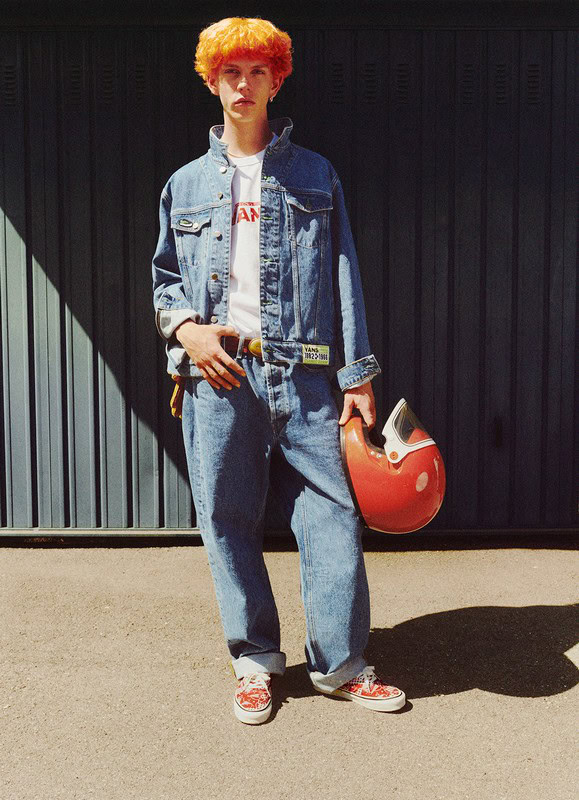 Per quanto riguarda l’abbigliamento, i “Paninari”, amanti del denim e dell’appariscenza, hanno ispirato pesantemente la collezione Vans x WP. Protagonisti sono la Loose Fit Jean Jacket e il Loose Fit 5 Pocket Jean: un denim premium da 14 once di peso elevato in un pregiato stonewash con finiture e bottoni con logo in co-branding, ispirati a dettagli presenti negli archivi WP.