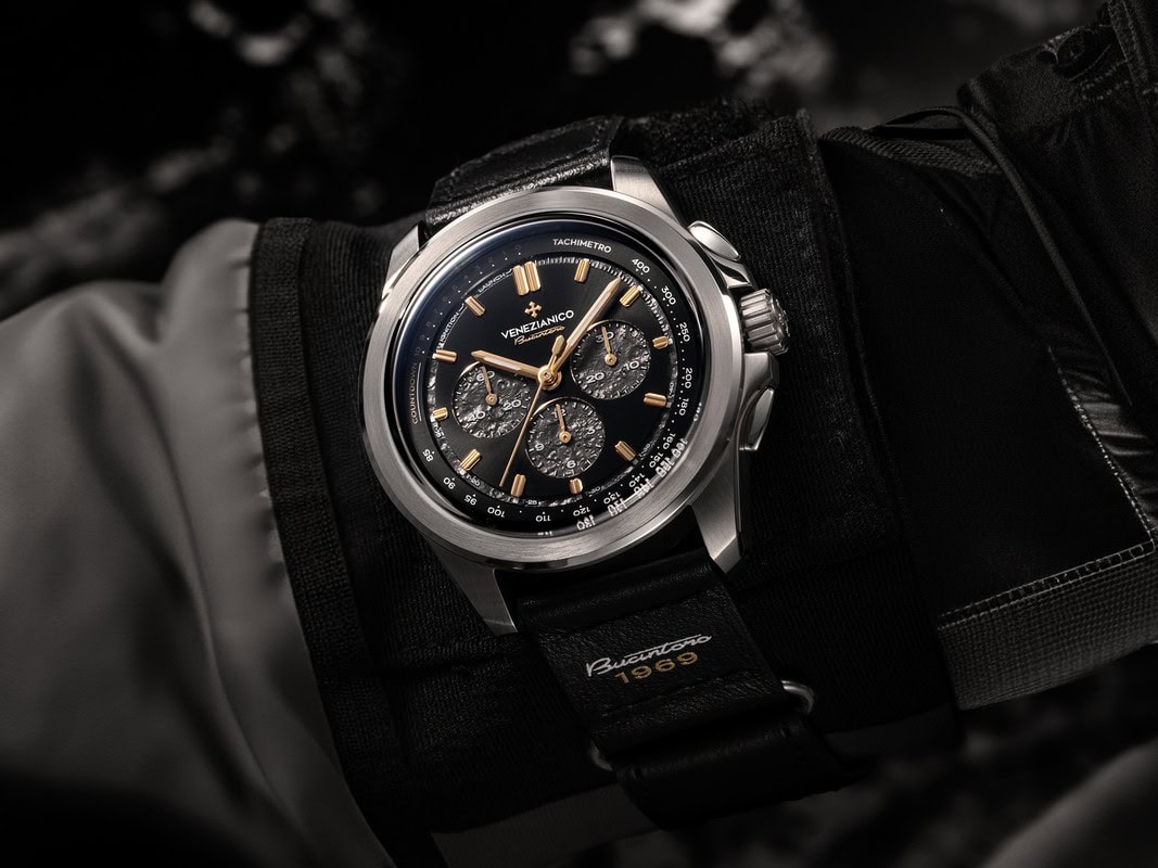 Nel 1969, l’umanità ha assistito a uno degli eventi più rivoluzionari della storia: l’atterraggio sulla Luna da parte dell’Apollo 11. Per celebrare questo storico momento, Venezianico ha lanciato l’edizione limitata Bucintoro 1969, un orologio che non solo rend omaggio all’allunaggio e ancora di più alla prima passeggiata dell’uomo nello spazio, ma racchiude anche un pezzo di storia dell’orologeria. Prodotto in soli 69 pezzi, questa serie limitata incorpora il movimento Lemania 1873, lo stesso utilizzato per scandire i secondi sul polso degli astronauti delle missioni Apollo.