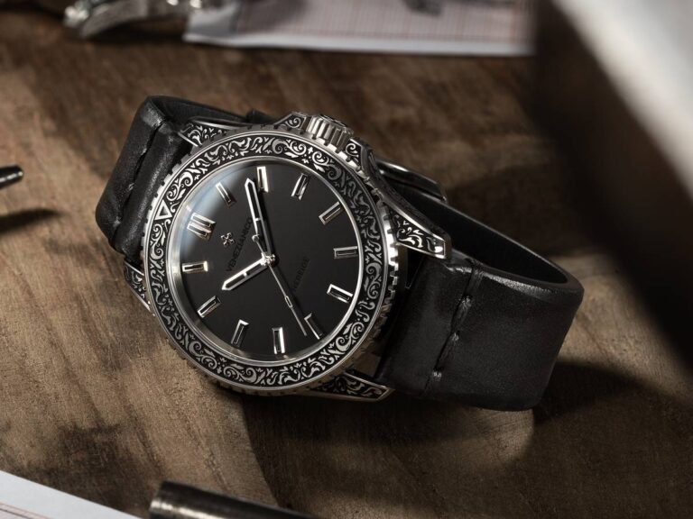 I fratelli Alessandro e Alberto Morelli, fondatori di Venezianico, hanno scelto di reinterpretare il loro iconico diver attraverso un motivo decorativo che richiama le foglie di acanto, simbolo di equilibrio e purezza nella cultura greca e romana, poi ripreso dai maestri del Rinascimento. Il risultato è un orologio che celebra l’arte e la storia veneziana, offrendo al contempo un design contemporaneo e una grande attenzione ai dettagli.