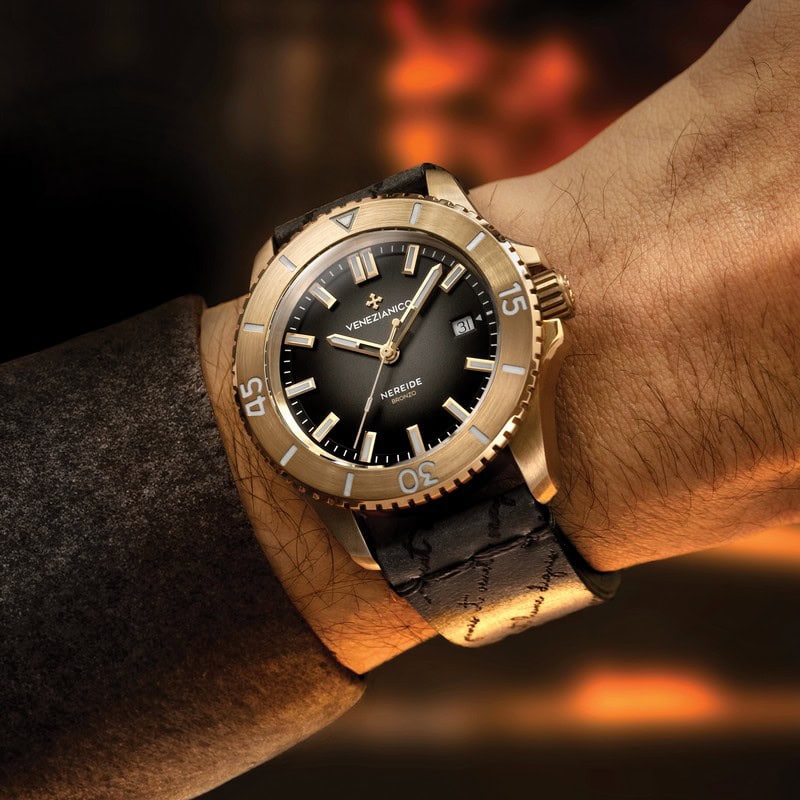 Nereide Bronzo di Venezianico è un racconto di storia ed arte. Il nuovo orologio Diver, con la sua cassa in bronzo, è un tributo vivente alla ricca eredità veneziana e alla sua secolare tradizione nella lavorazione del bronzo.