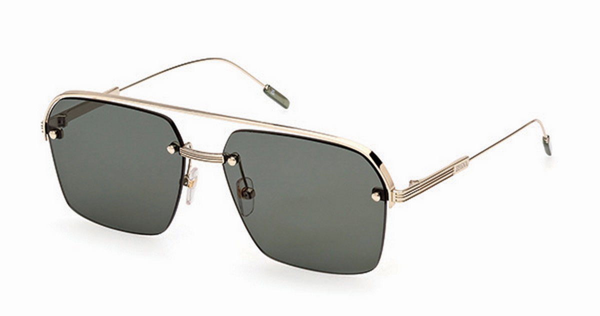 Navigator dal design timeless con doppio ponte sospeso dal profilo unico. Le aste hanno il nuovo logo Zegna laserato e presentano terminali slim in abbinamento cromatico con il colore delle lenti.