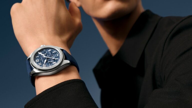bianco su blu, l’indice luminescente è una linea bianca che richiama l’orizzonte artificiale degli aerei. Animato dal movimento El Primero 3620, il Pilot Automatic dispone di una riserva di carica di 60 ore e viene fornito con cinturini intercambiabili in caucciù blu effetto “Cordura” e pelle di vitello marrone.