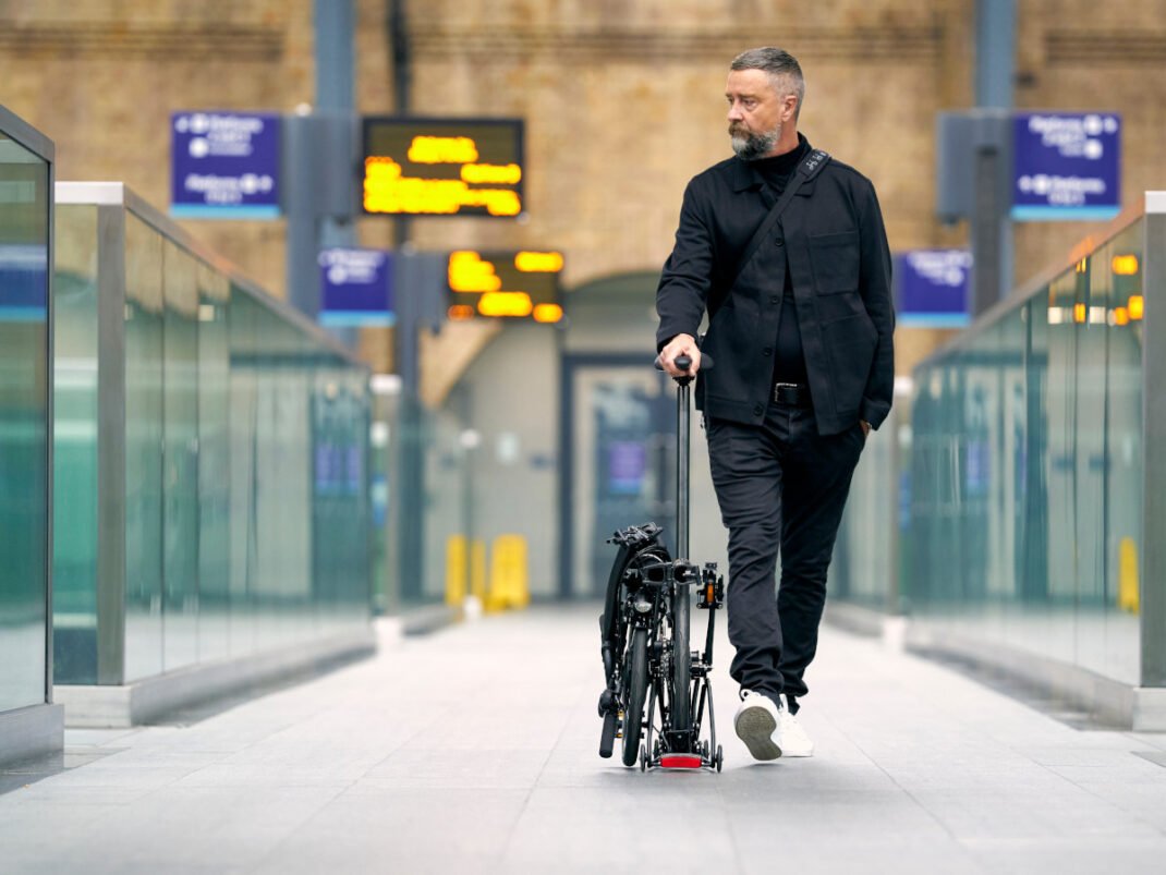 Brompton Electric P Line Urban può essere ripiegata in 20 secondi fino ad occupare una dimensione di 645 x 565 x 270 mm. La parte migliore sembra proprio essere la possibilità di usarla come un trolley da viaggio grazie alla configurazione integrata delle ruote Advanced Roller Wheels, utilizzando la sella sul reggisella a doppio bloccaggio per sterzare. C’è anche la possibilità di utilizzare il Roller Rack da 341 g per fare in modo che la bicicletta piegata sembri una valigia superleggera.