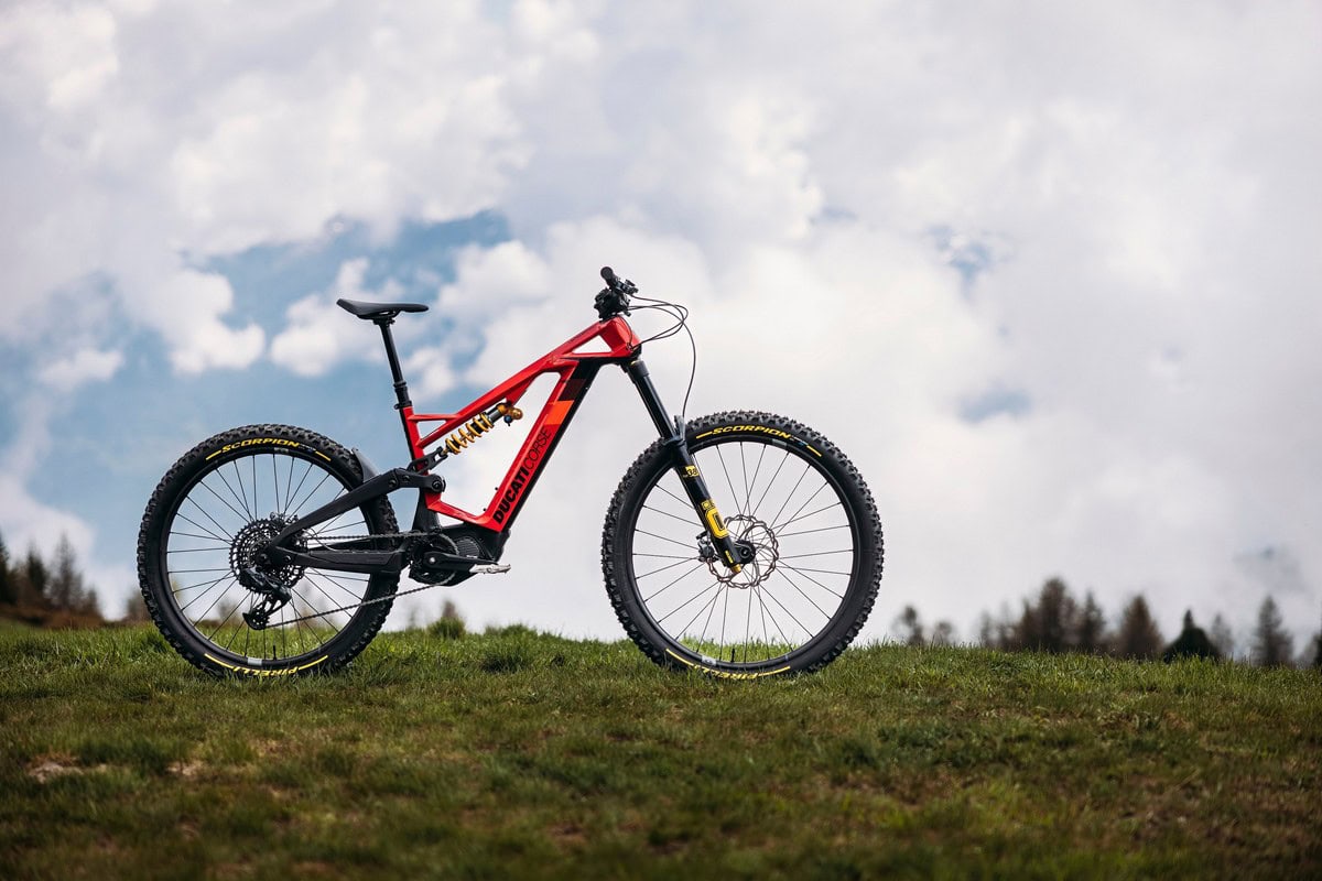 La livrea disegnata da Aldo Drudi in collaborazione con il Centro Stile Ducati è ispirata alle Desmosedici GP23 del team ufficiale, esaltando il carattere unico di questa e-mtb prodotta in edizione limitata di 230 esemplari numerati.