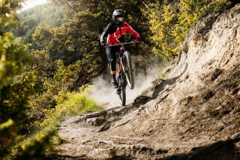 La forcella Öhlins RXF38 m.2 ad aria e l’ammortizzatore a molla Öhlins m.2 con tecnologia TTX sono completamente regolabili sia in estensione e compressione, alle alte e basse velocità, garantendo precisione di guida e stabilità. Il cambio elettronico wireless posteriore SRAM GX AXS a 12 velocità fornisce una cambiata sempre immediata e precisa. I freni Braking First con leve personalizzate Ducati corse sono tra i più potenti attualmente sul mercato.