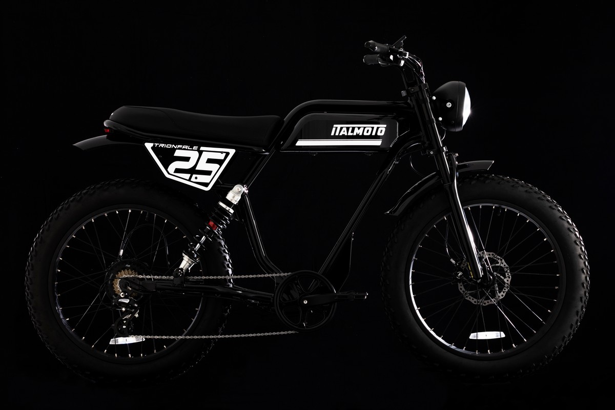 Con la Trionfale le due ruote marciano spedite verso il futuro e, sposando la tecnologia, evolvono nell’aspetto e nelle prestazioni. Le ruote Fat da 24 pollici, l’ammortizzazione full anteriore e posteriore, la sella biposto interamente in pelle e il telaio in alluminio a tralicci a culla ispirato al mondo motociclistico sono alcuni dei tratti distintivi della Trionfale: un mix di bellezza, passione e tecnologia Made in Italy.
