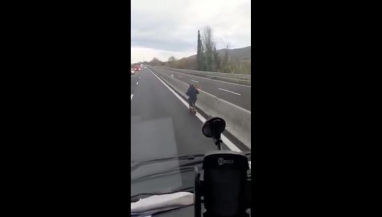 Un ragazzo ha percorso un tratto autostradale a bordo di un monopattino elettrico. Dalle immagini crediamo si tratti della RA11 Raccordo Autostradale Ascoli Piceno – Porto D’Ascoli, nei pressi dell’uscita di Monsanpolo del Tronto. Utilizzo assolutamente vietato del monopattino e oltremodo pericoloso per sé e per gli altri. Prima di tutto non è evidentemente un mezzo nato per viaggiare in autostrada, anche se dotato di sellino. Poteva finire a contatto con un altro veicolo, e tra l’altro il casco indossato non sembra essere omologato come quelli per le moto. Non ultimo, in caso di batteria scarica il guidatore si sarebbe trovato fermo con le automobili e camion a sfrecciargli a pochi centimetri.