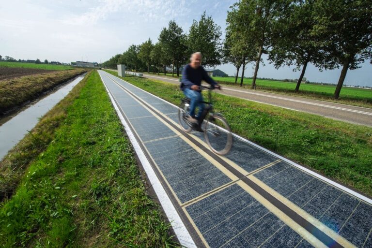 Si tratta di un esempio di come l’energia rinnovabile possa integrarsi con le infrastrutture viarie. Queste piste ciclabili, situate nelle province di Olanda Settentrionale e Brabante Settentrionale, sono particolarmente notevoli per l’area coperta da pannelli solari. Si parla infatti di ben 1.000 metri quadrati ciascuno.