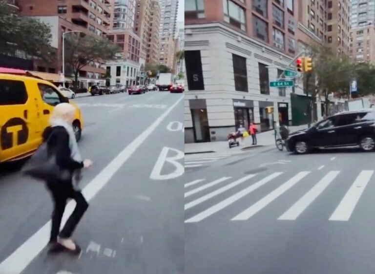 Nel filmato, si può osservare come questi ciclisti abbiano comportamenti irresponsabili, rischiando persino di investire una donna che cammina sulle strisce pedonali e attraversando un incrocio molto trafficato di New York quando il semaforo è rosso. L’incidente che segue vede uno dei ciclisti coinvolto in una collisione con un’auto in transito.